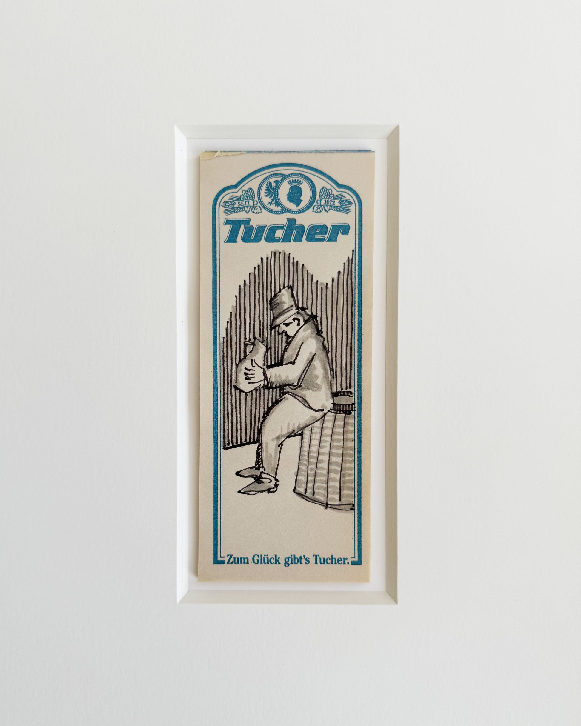 Eine Originalzeichnung von Karl Anton Koenigs. Auf einem Kellnerblock von Tucher Eingefasst ist der Kellnerblock in einem 3mm Starken Klapppassepartout in Altweiss mit einer Grösse von 24 x 30 cm.